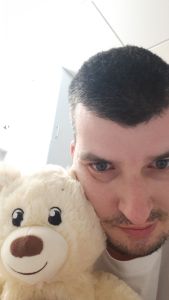 Today, Andrew brought me in a new teddy who is called Liam. Now I have two teddies with me. Liam is the plain soft one. Tommy is the camo military bear. See photo below